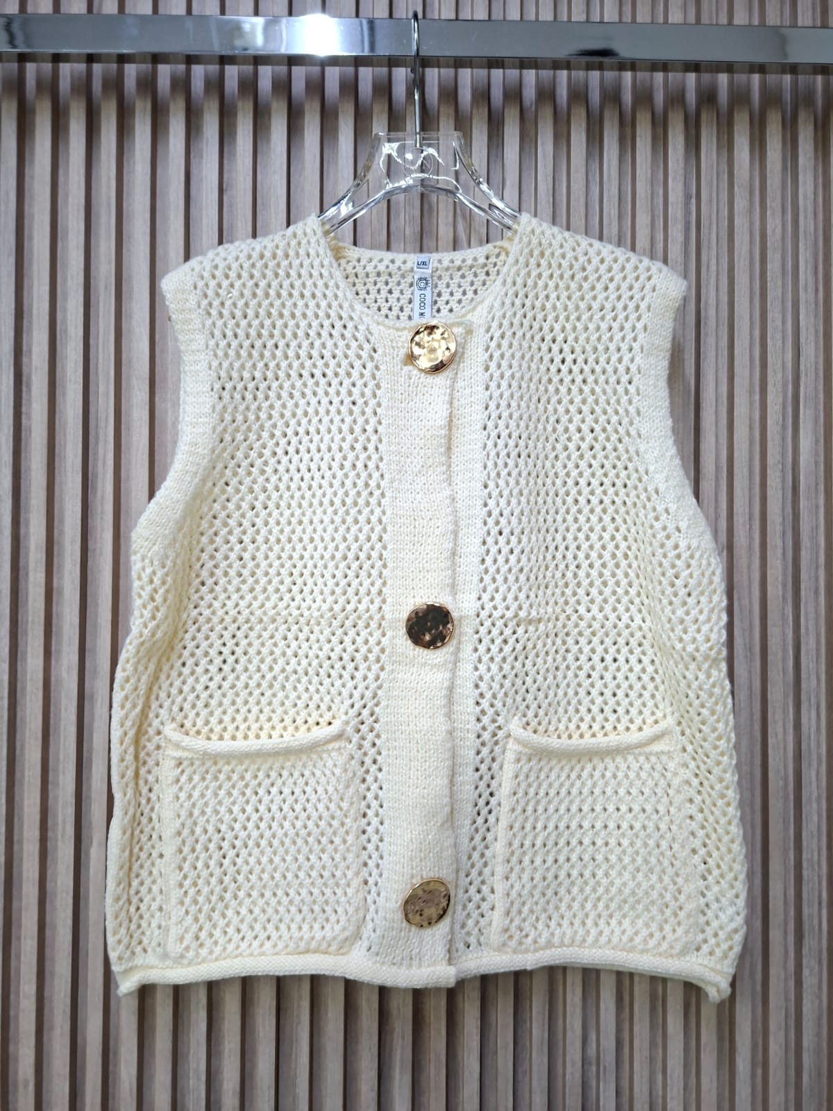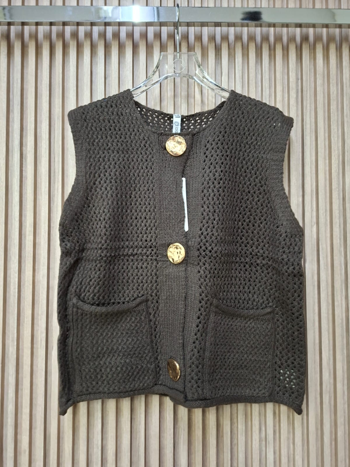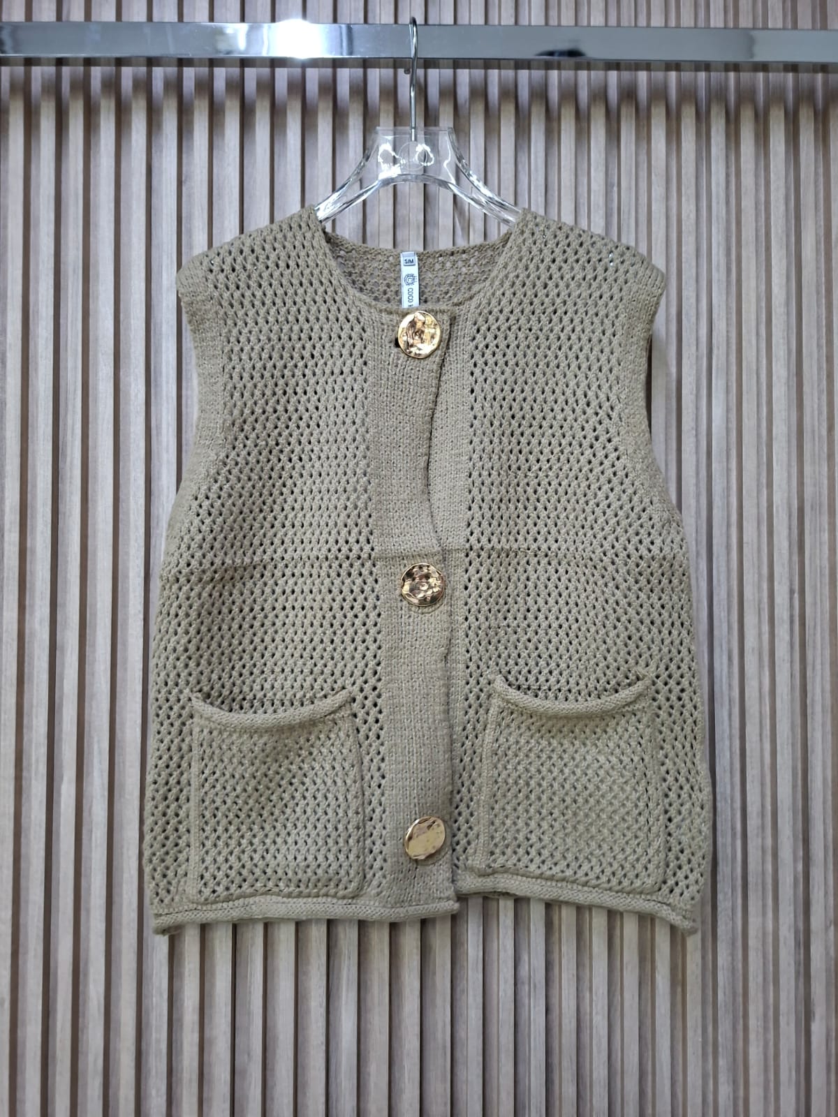 Chaleco FF-12523 confeccionado en punto trenzado de alta calidad. Esta pieza versátil se destaca por su construcción refinada y textura tridimensional que añade profundidad a cualquier conjunto. Su diseño minimalista permite combinarlo sin esfuerzo con prendas básicas o estampadas, adaptándose tanto a looks casuales como formales. Ideal para capas estratégicas durante transiciones de temporada, ofrece comodidad sin comprometer el estilo. Un básico imprescindible que eleva la sofisticación de tu guardarropa.
