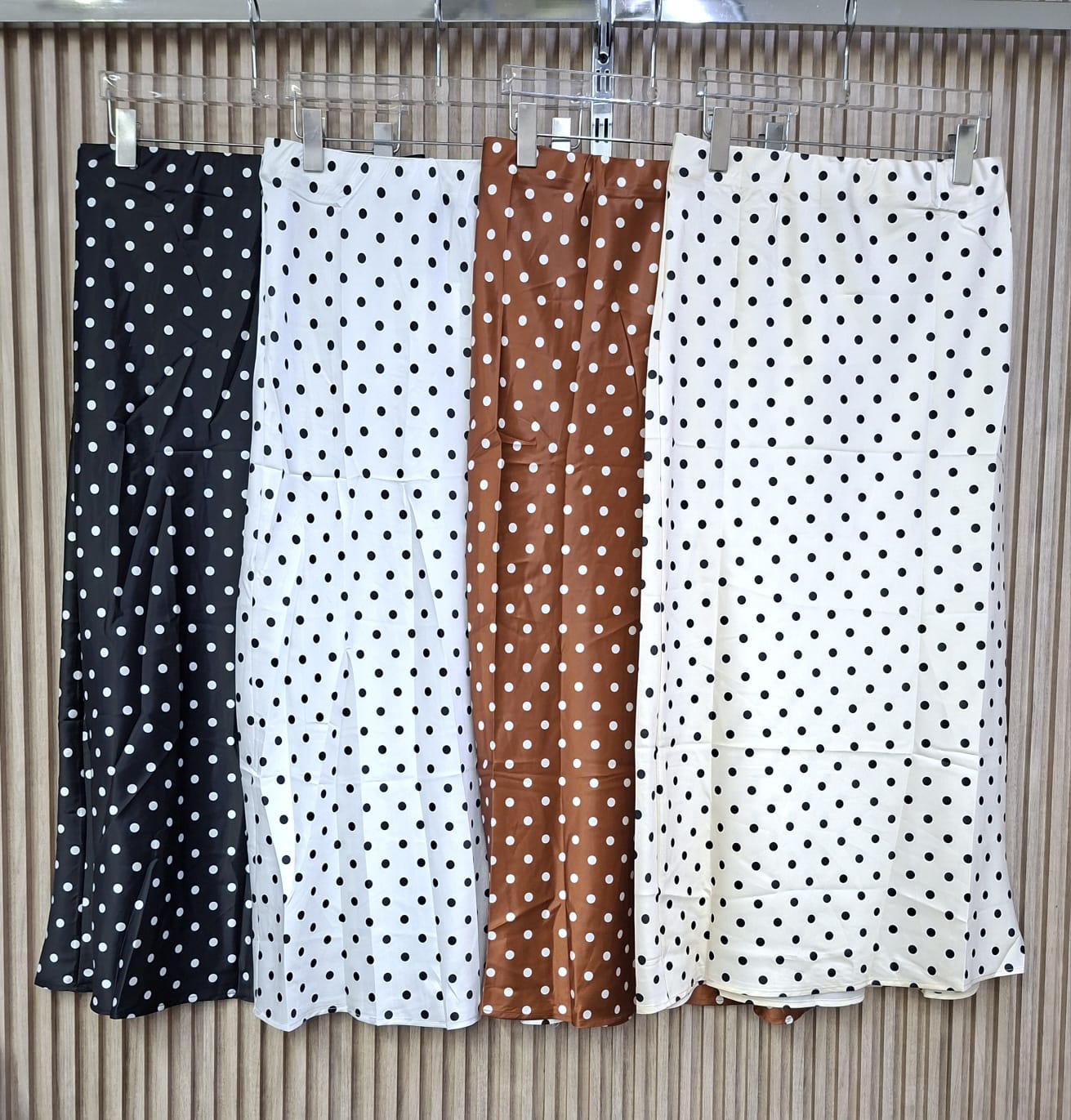 Falda de satín con diseño de lunares que combina sofisticación y elegancia en cada detalle. Este modelo versátil se adapta perfectamente a looks de tarde y noche, realzando tu figura con un acabado liso y brillante característico del satín. Disponible en tallas CH, M y G para garantizar el ajuste ideal. Una pieza imprescindible que transforma cualquier ocasión especial en un momento memorable.
