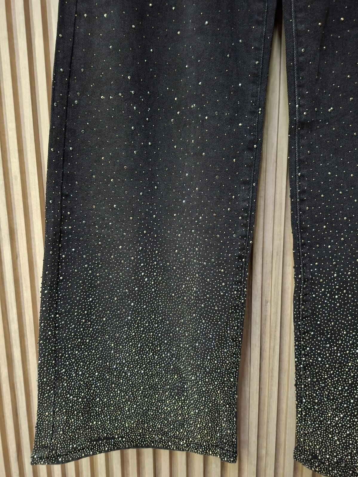 Pantalón denim versátil que combina estilo y funcionalidad. Diseñado con brillos estratégicos al frente y espalda que añaden un toque de sofisticación a tu look cotidiano. El corte recto favorece tanto figuras petite como curvy, proporcionando comodidad sin comprometer el estilo. Cuenta con bolsas funcionales de tamaño generoso, perfectas para guardar tus pertenencias durante el día. Disponible en tallas S, M y G. Una pieza esencial de la moda femenina mexicana que se adapta a cualquier ocasión casual.