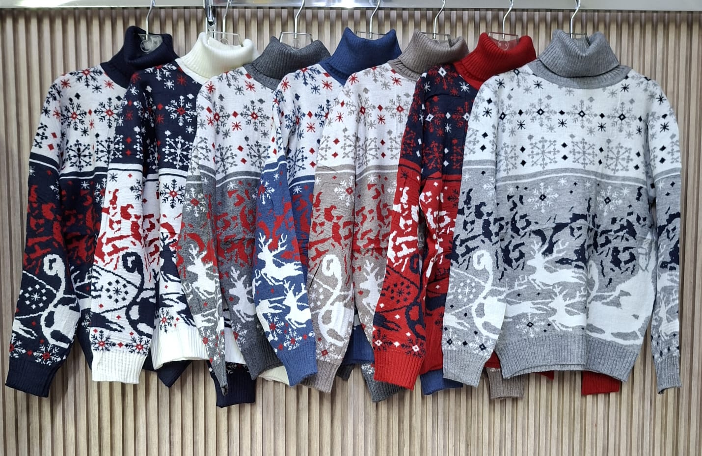 Envuélvete en la magia navideña con este suéter festivo que combina diseño encantador con confort excepcional. Presenta un patrón de renos y nieve que captura la esencia del Polo Norte, perfecto para las celebraciones invernales. Confeccionado con tejido suave y de alta calidad, proporciona el calor necesario para los días más fríos sin sacrificar la comodidad. Su construcción cuidadosa garantiza durabilidad y un ajuste agradable que te acompañará durante toda la temporada. Ideal para quienes buscan expresar su espíritu festivo mientras disfrutan de calidez y estilo.