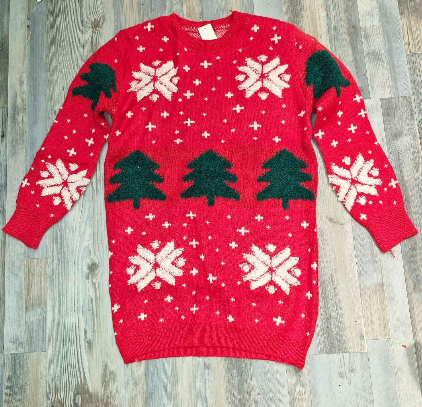 Suéter Navideño Lussi con diseño de pinos y copos de nieve que captura la esencia de la temporada festiva. Confeccionado en talla única, ofrece comodidad excepcional para el uso diario casual. Su tejido suave y acogedor proporciona calidez sin sacrificar el estilo, mientras que su corte versátil se adapta a diferentes siluetas. Ideal para quienes buscan prendas navideñas auténticas que combinen tradición mexicana con tendencias contemporáneas. Perfecto para celebraciones informales, reuniones familiares o simplemente disfrutar de la comodidad durante los días festivos.